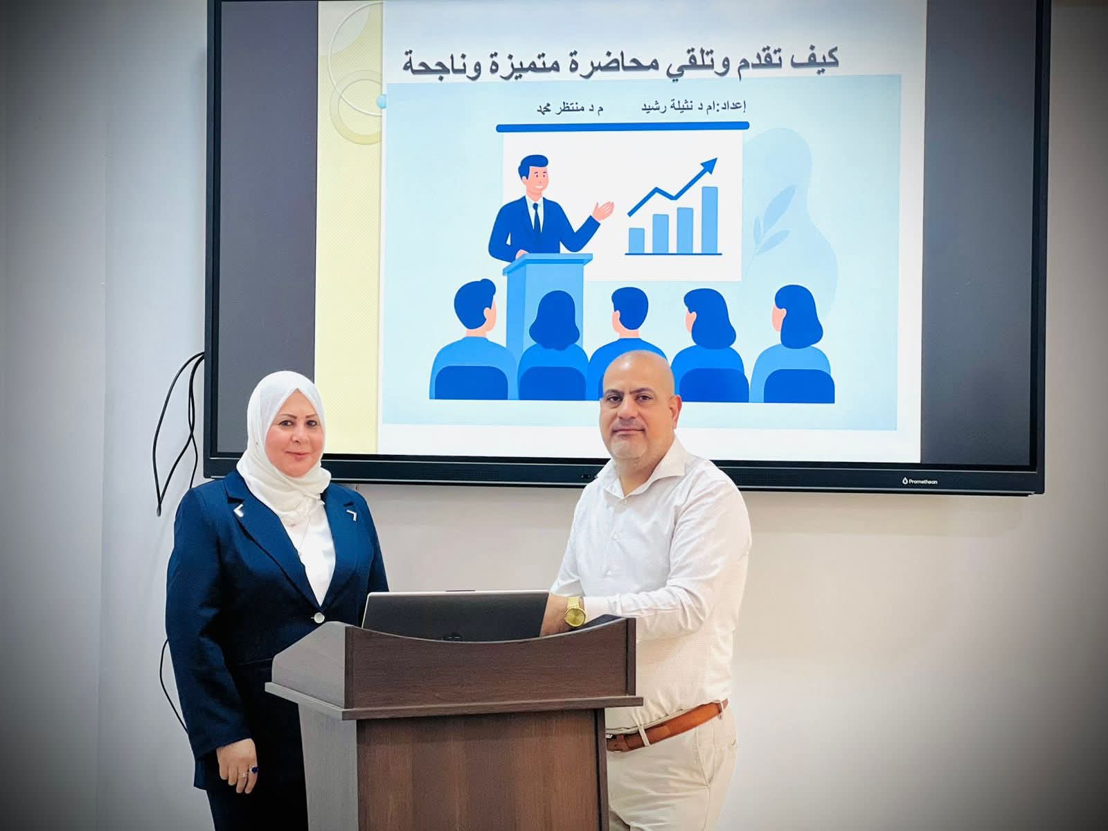 أقامت كلية الطب البيطري في جامعة الشطرة، اليوم الاثنين الموافق 6 تشرين الأول 2025، ندوة علمية بعنوان “كيفية تقديم محاضرة ناجحة”، حاضر فيها كل من م.د منتظر محمد فليح ا.م.د نثيلة رشيد حميد هدفت الندوة إلى تنمية مهارات التدريسيين في إعداد وتقديم المحاضرات العلمية بصورة فعّالة، من خلال التركيز على أساليب الإلقاء الجذابة وتنظيم المحتوى العلمي، إضافة إلى استخدام الوسائل التعليمية الحديثة بما يسهم في إيصال المعلومة بشكل واضح وتحفيز تفاعل الطلبة داخل القاعة الدراسية.