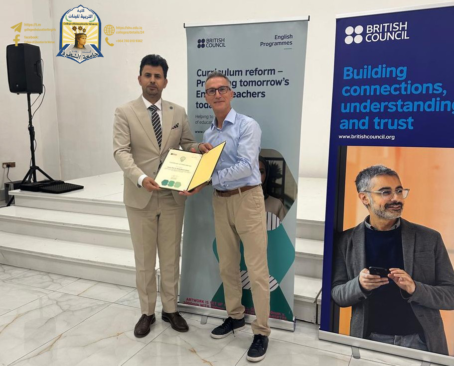 شارك الأستاذ المساعد الدكتور رافع محسن علوان، رئيس قسم اللغة الإنكليزية، في دورة تدريبية مكثّفة (Training Course) خاصة بتحديث وتطوير مناهج اللغة الإنكليزية في أقسام اللغة الإنكليزية بكليات التربية في الجامعات العراقية، وذلك بإشراف المجلس الثقافي البريطاني (British Council) وبمشاركة جميع رؤساء أقسام اللغة الإنكليزية في الجامعات العراقية.
