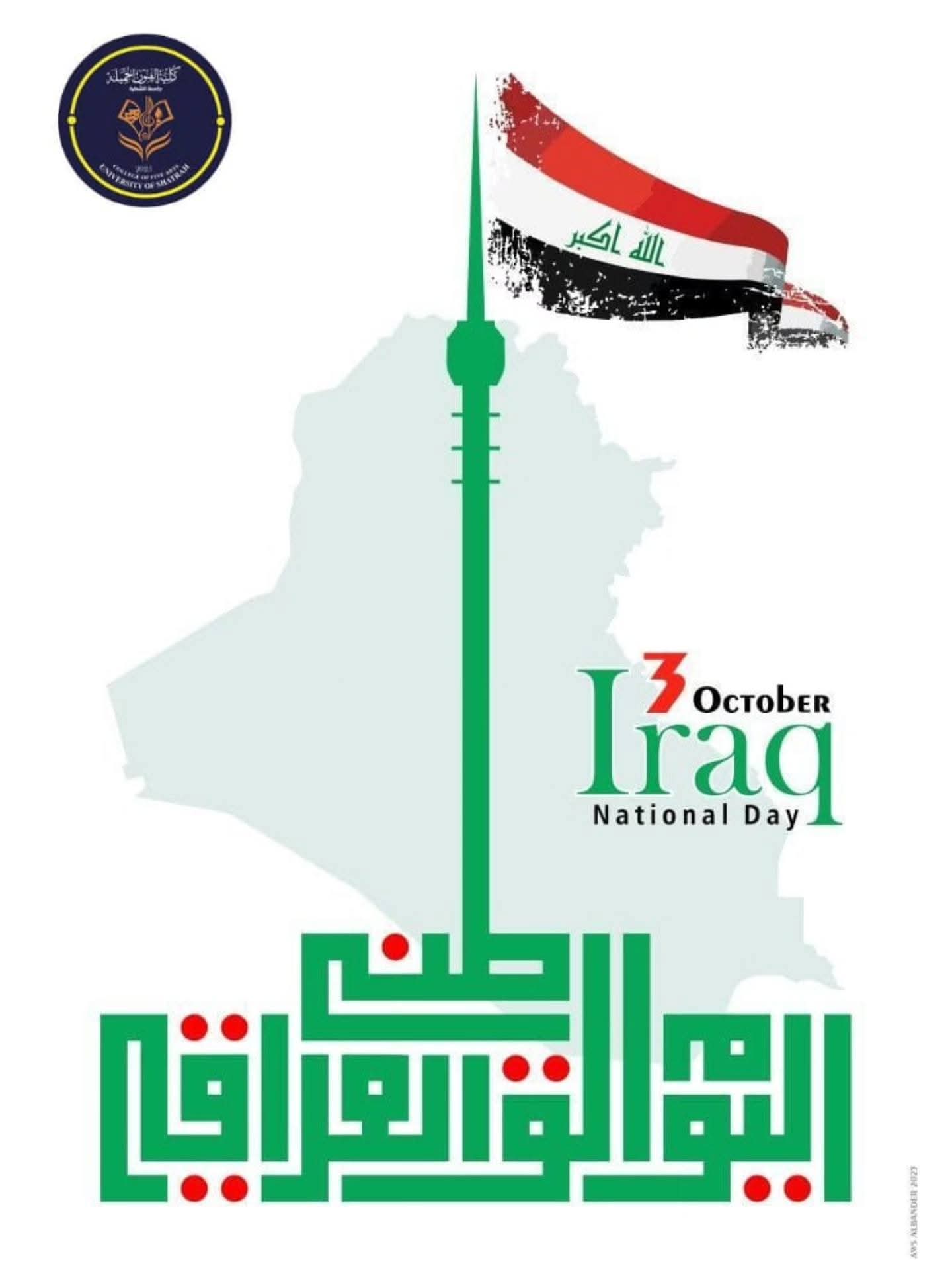 بمناسبة اليوم الوطني العراقي نتقدم بأحرّ التهاني والتبريكات إلى أبناء شعبنا العزيز ، داعين الله أن يحفظ عراقنا الغالي ، ويمنّ عليه بالأمن والاستقرار والازدهار .