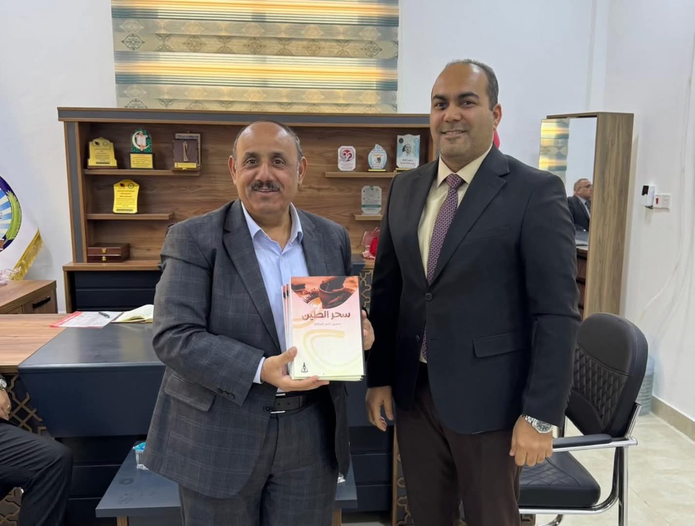 وعلى هامش اللقاء، قدّم السيد علي حسين البطاط نسخًا من كتاب “سحر الطين” للفنان حسين ناصر البطاط، والذي يُعدّ أحد أهم المراجع الأكاديمية في فن الخزف، تقديرًا لدور الكلية في دعم البحث والدراسة في الفنون التشكيلية.