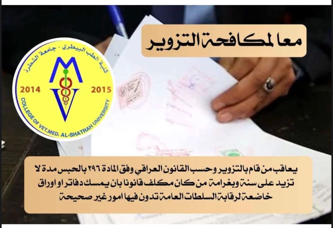 باشرت كلية الطب البيطري في جامعة الشطرة اليوم الاثنين الموافق 19 تشرين الأول 2025، بحملة توعوية ضد الفساد الإداري والمالي، وذلك استنادًا إلى توجيهات وزارة التعليم العالي والبحث العلمي ورئاسة الجامعة.