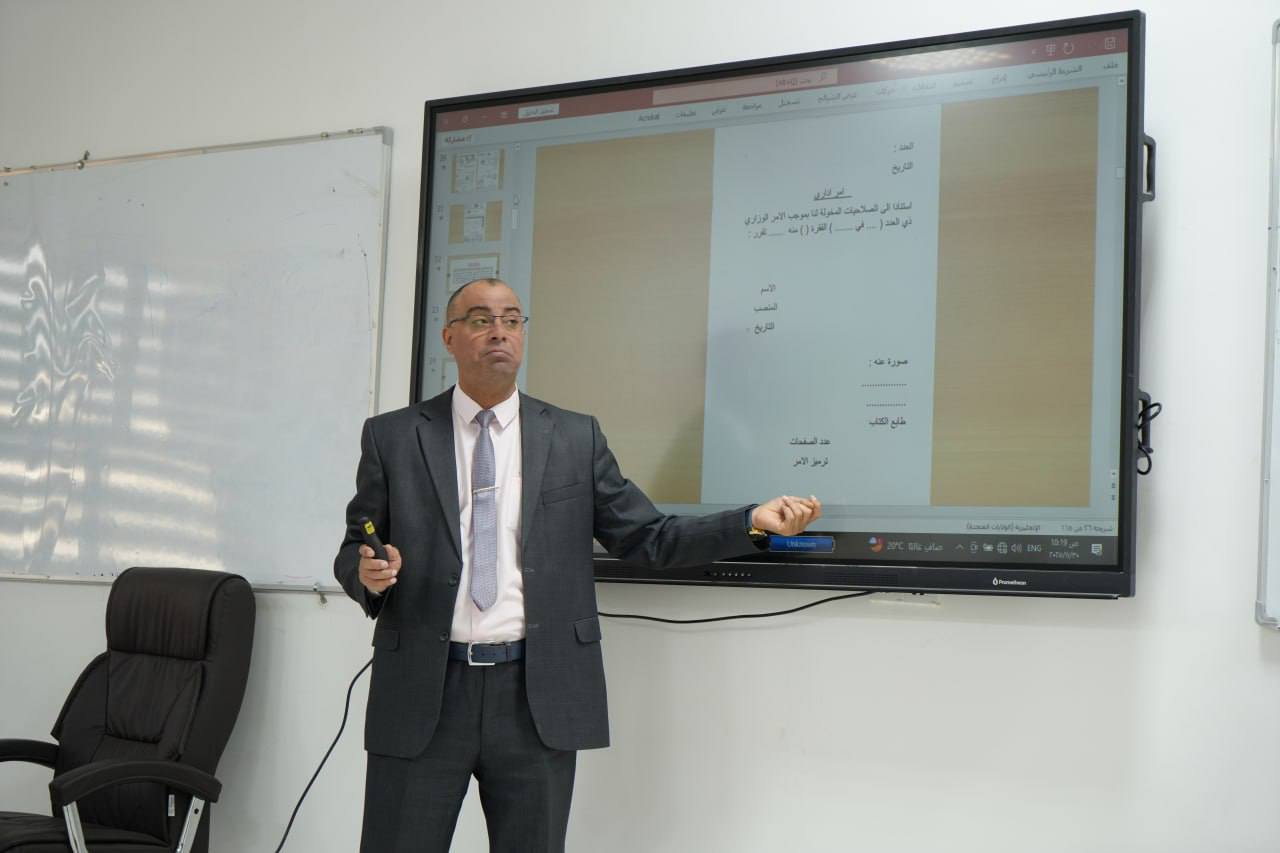 مشاركة تدريسي من كلية التربية للبنات في محاضرة تدريبية عن المهارات الإدارية.