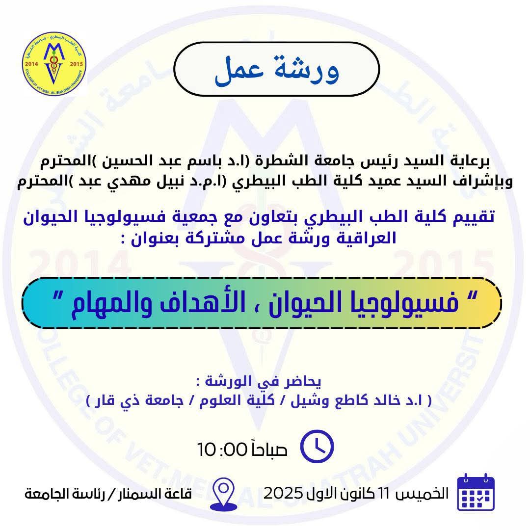 المساعد العلمي لرئيس جامعة الشطرة يزور كلية الطب البيطري للاطلاع على واقع الدراسات الأولية والعليا