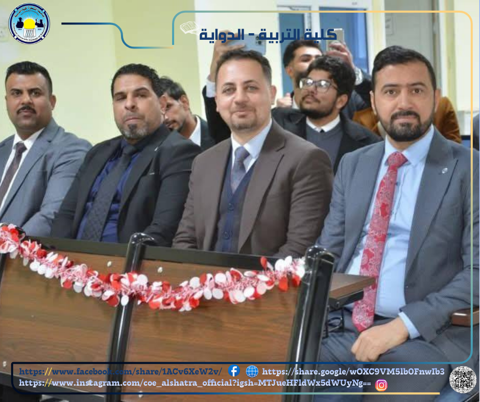 كما شهدت الاحتفالية تكريم السيد المساعد العلمي لرئيس الجامعة أ.م.د فاضل محسن حمد، من قبل السيد عميد كلية التربية، تثمينًا لجهوده المباركة ودعمه المتواصل للأنشطة العلمية والأكاديمية في الجامعة.