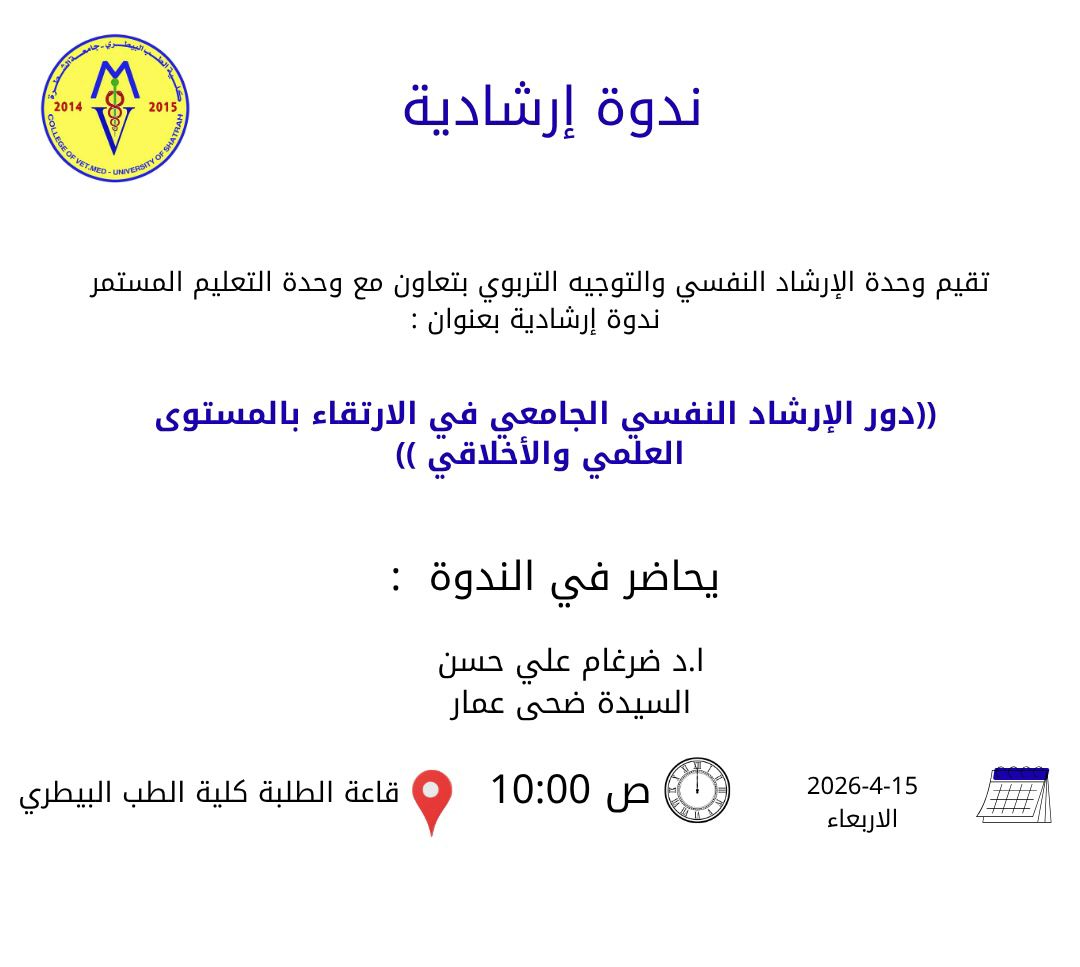 خطت التحسين كلية الطب البيطري للعام الدراسي 2024-2025