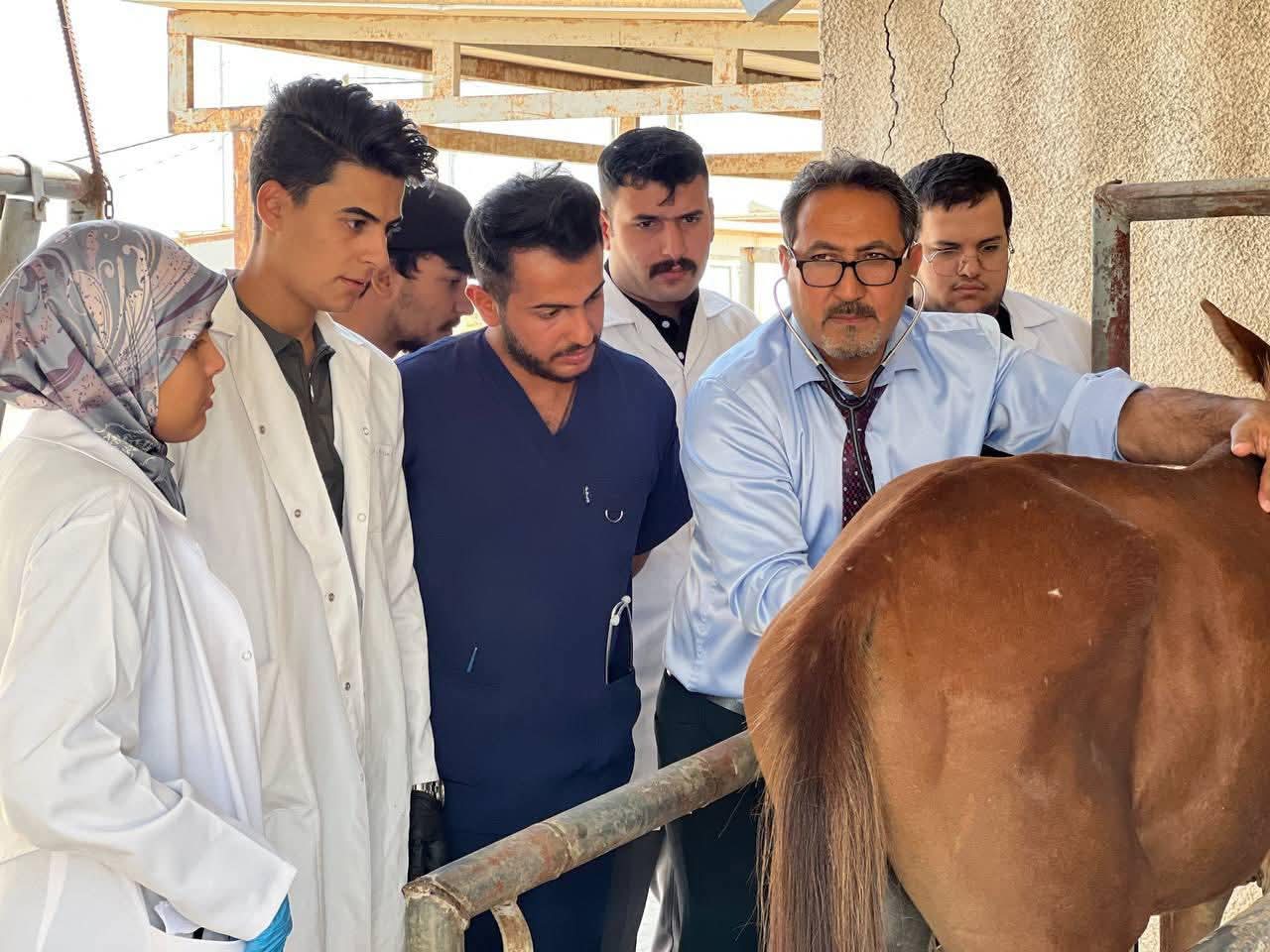 جانب من المحاضرة العملية لطلبة المرحلة الرابعة لمادة السريريات في كلية الطب البيطري
