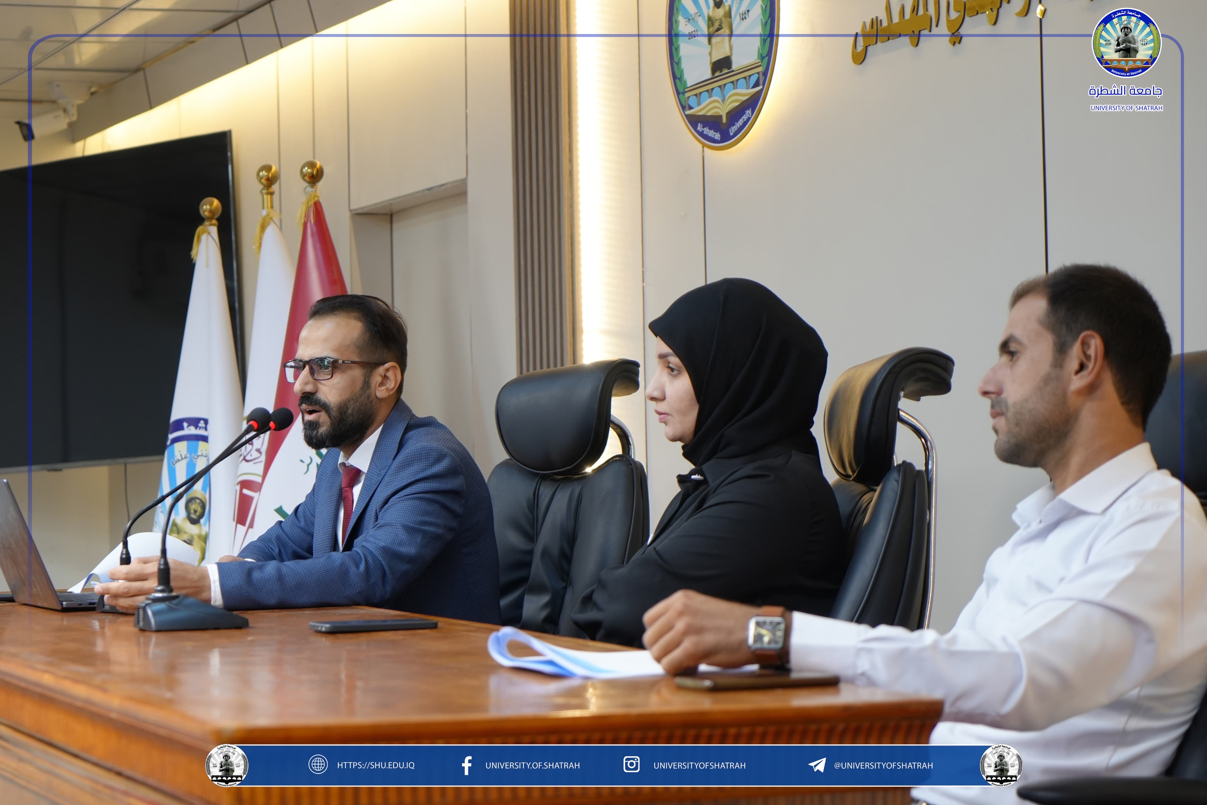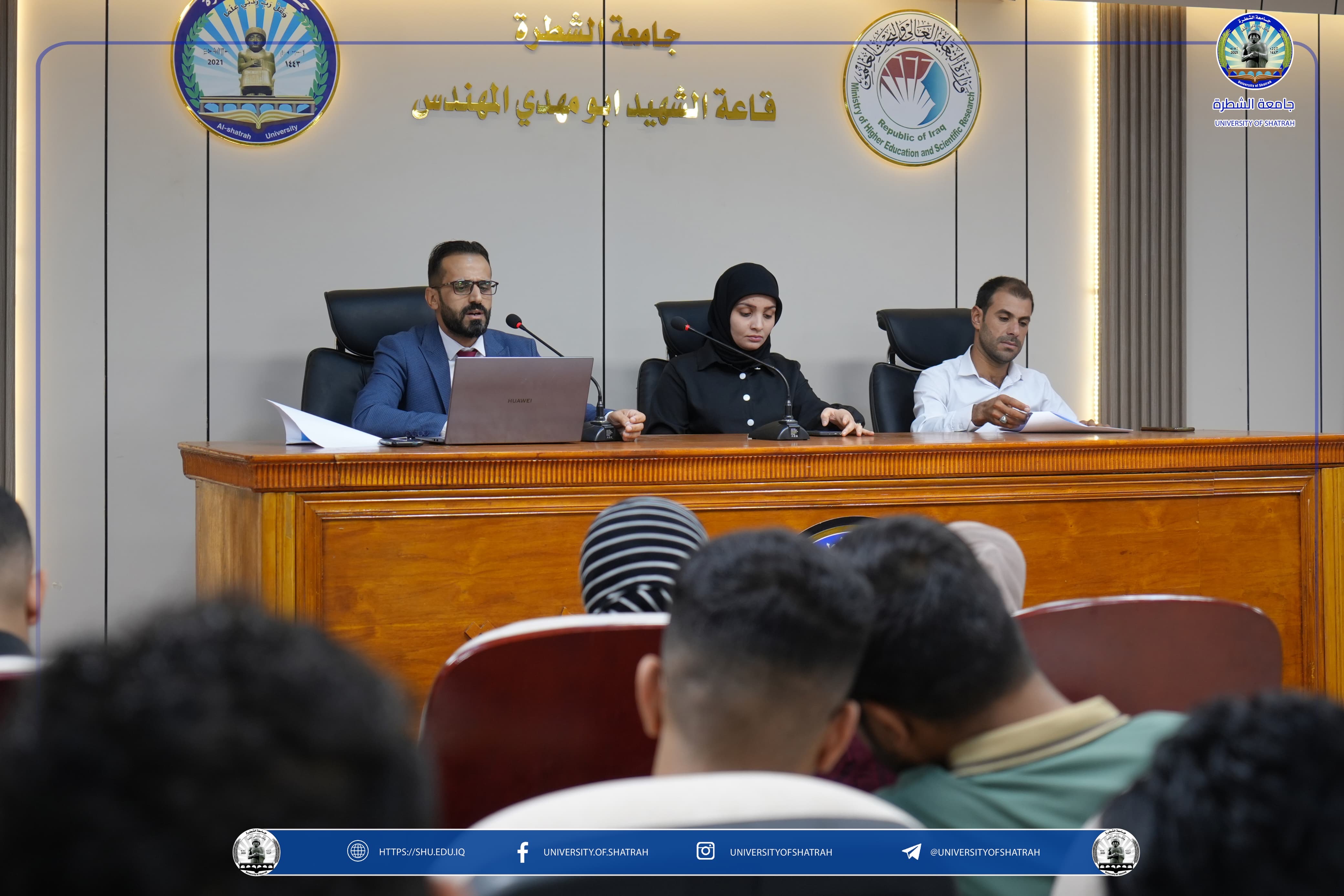 برعاية السيد رئيس جامعة الشطرة الأستاذ الدكتور باسم عبد الحسين جار الله المحترم، أقام قسم شؤون الأقسام الداخلية / وحدة البحث الاجتماعي وبالتعاون مع مركز التعليم المستمر ندوة تثقيفية بعنوان "دور الجامعة في توعية الطلبة من مخاطر المخدرات والحماية منها"، اليوم الاثنين 3 تشرين الثاني 2025 على قاعة الشهيد أبي مهدي المهندس، أدارت الندوة السيدة فاطمة سلمان حنون، وحاضر فيها كل من م.م. حسين رزاق جلود وم.م. سيف علي حسين.
