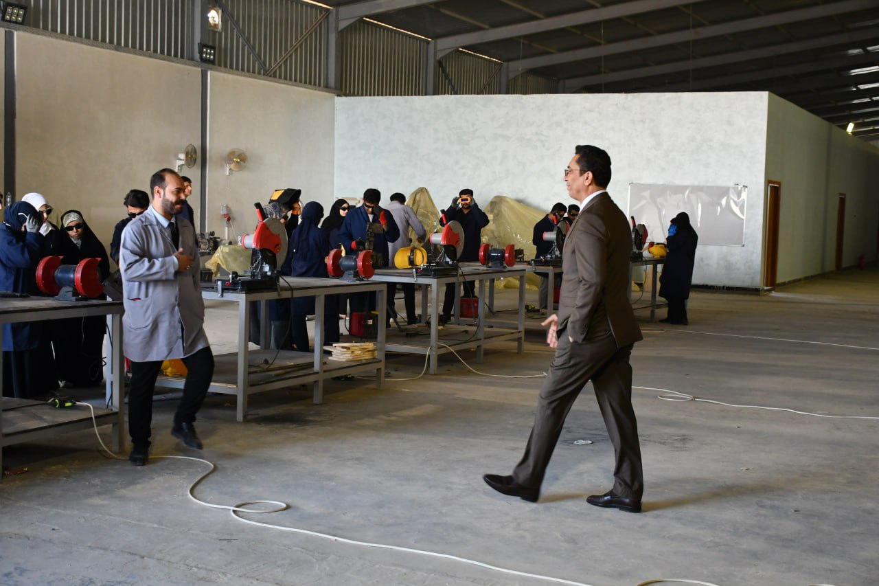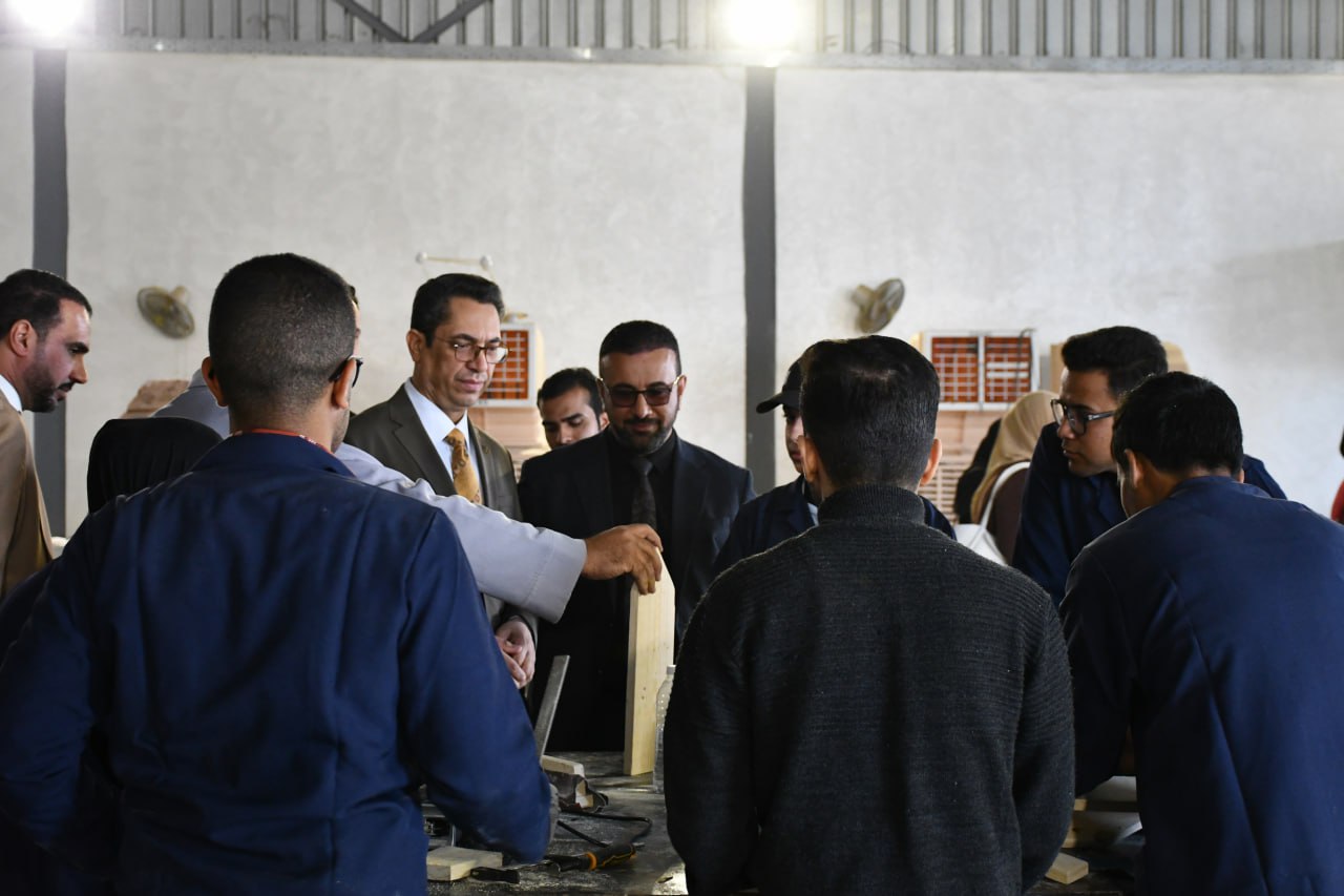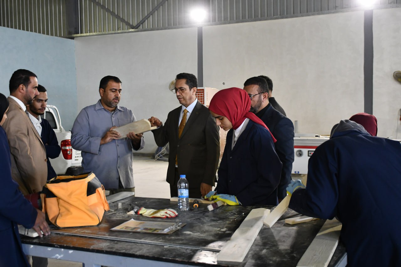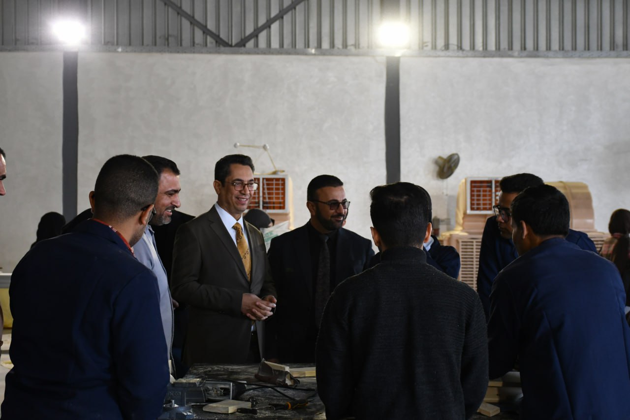 كما أكد على أهمية توفير أفضل الظروف التدريبية للطلبة بما يعزز مهاراتهم التطبيقية موجّهًا بضرورة الاستمرار في تعزيز البرامج التدريبية داخل الورش ورفع كفاءة العمل بما يخدم المسيرة العلمية للكلية والجامعة.