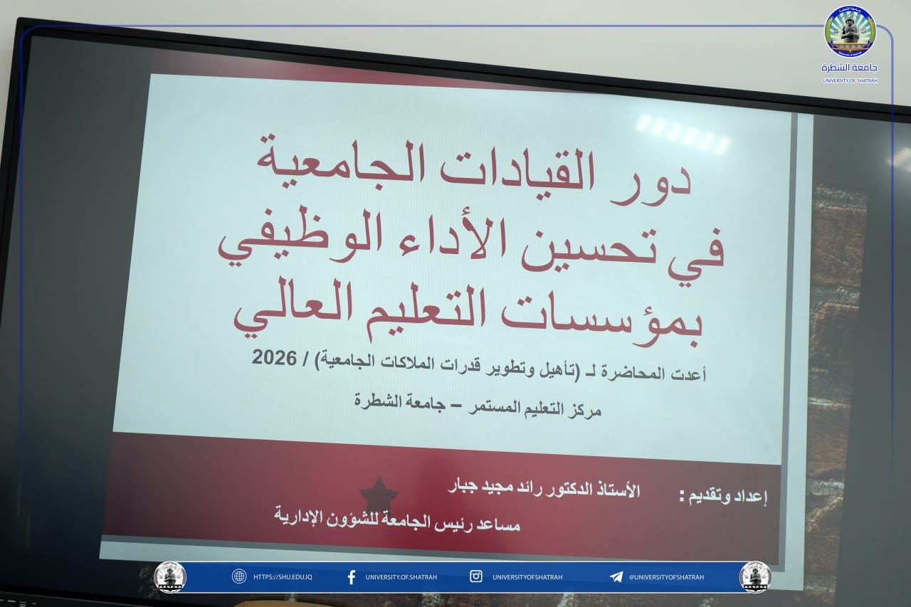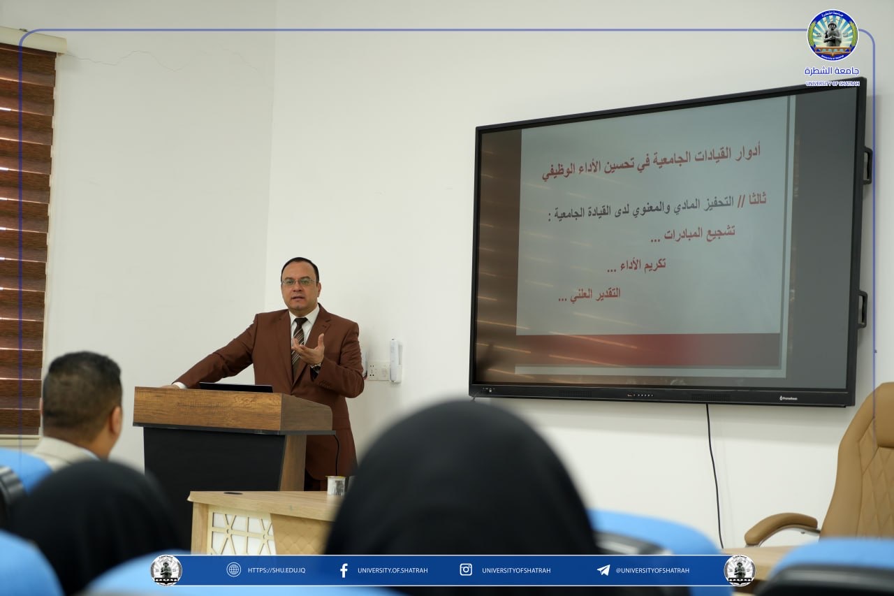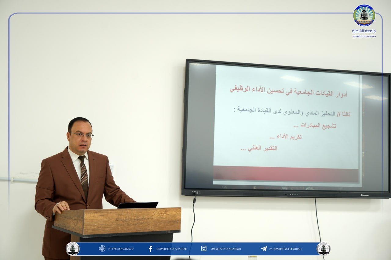 وتناولت المحاضرة أهمية القيادة الجامعية الفاعلة في تعزيز بيئة العمل، وتحفيز الملاكات الوظيفية، وتطوير الأداء المؤسسي من خلال التخطيط الفعّال والتواصل الإداري وبناء القدرات.