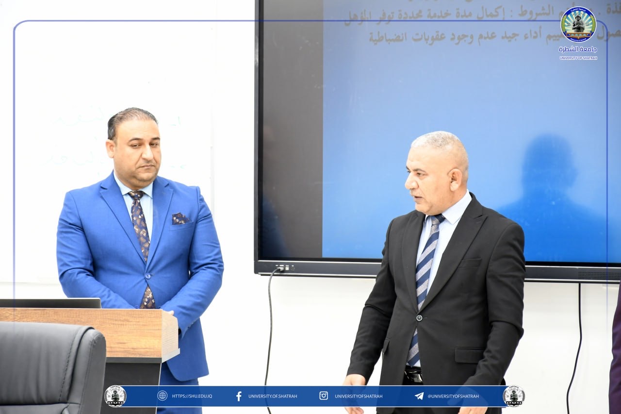 ضمن متابعته المستمرة لبرامج التطوير المهني، تفقد مساعد رئيس الجامعة للشؤون العلمية الأستاذ الدكتور فاضل محسن حمد، صباح يوم الأحد 26 نيسان 2026، مركز التعليم المستمر للاطلاع على سير الدورات التطويرية المقامة فيه و منها دورة الترفيع الوظيفي و دورة طرائق التدريس المحدثة ، والتعرّف على احتياجات المشاركين ومتطلبات تنفيذ البرامج التدريبية.