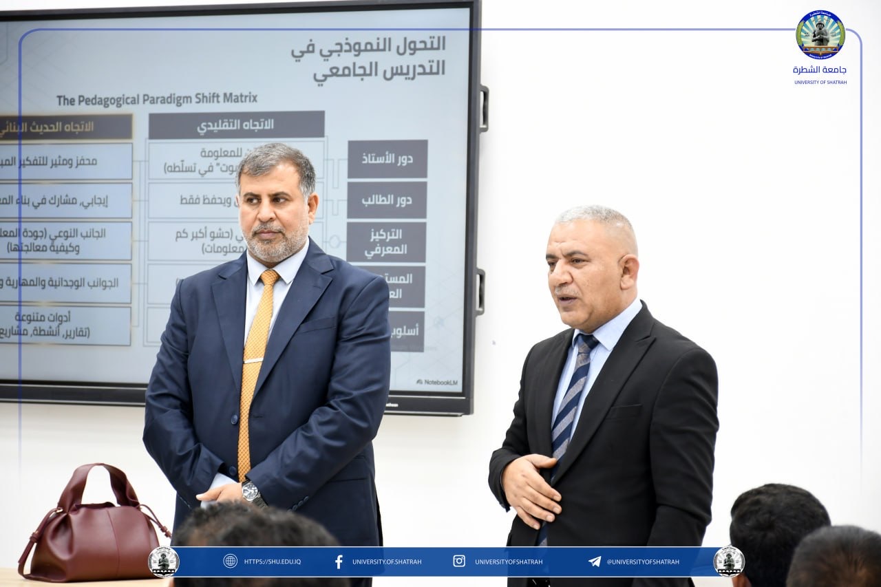 وخلال جولته، أكد السيد المساعد العلمي حرص رئاسة الجامعة على دعم المركز وتعزيز دوره في رفع كفاءة الملاكات التدريسية والإدارية، مشيداً بالجهود المبذولة في تهيئة بيئة تدريبية فعّالة تسهم في تطوير المهارات وفق معايير الجودة.
