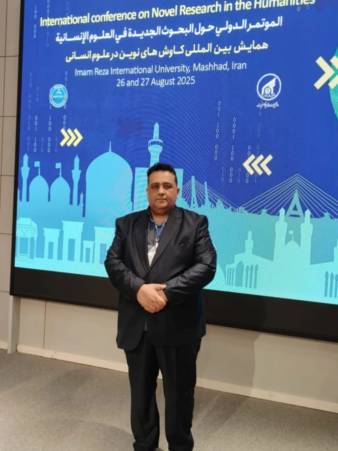 شارك الأستاذ المساعد الدكتور ميثم عزيز ثجيل، التدريسي في كلية التربية للبنات وأمين المكتبة المركزية في جامعة الشطرة، في أعمال المؤتمر العلمي الدولي الخامس للبحوث الإنسانية، الذي نظمته جامعة الإمام الرضا (ع) في الجمهورية الإسلامية الإيرانية للمدة 26-27 آب 2025.