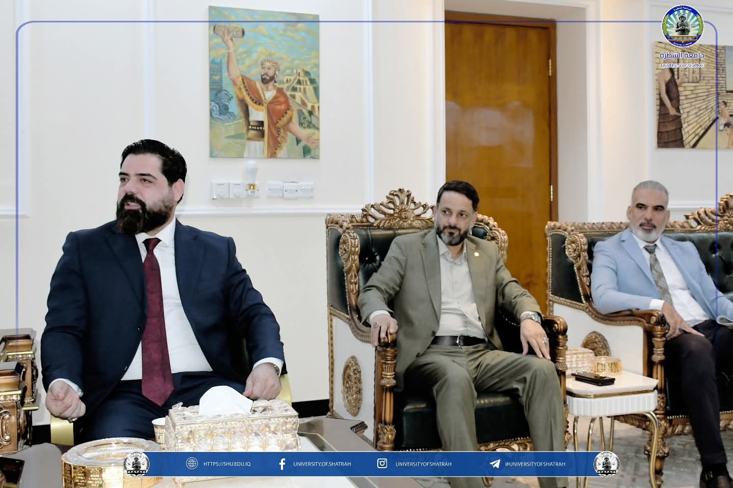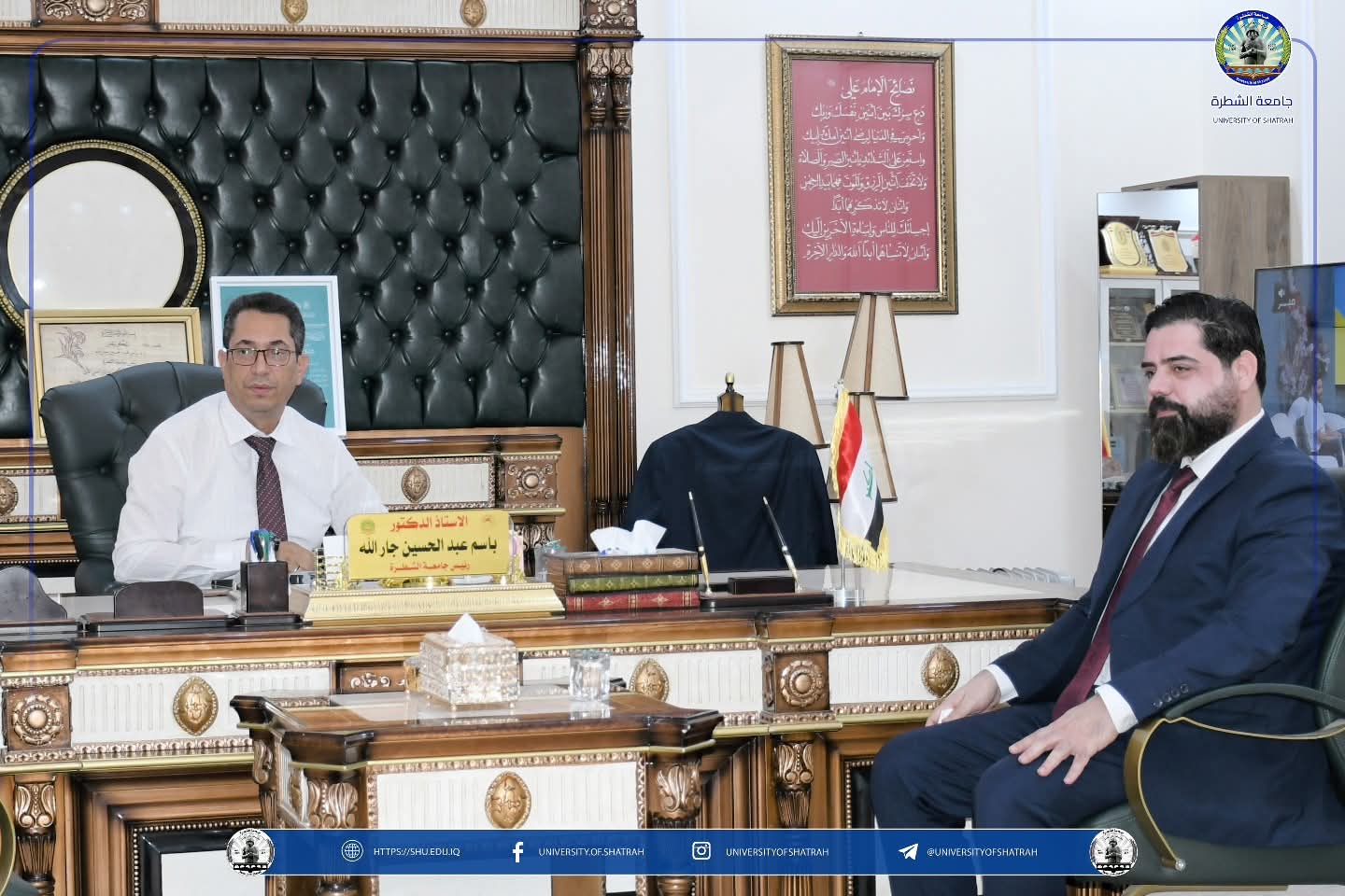 ورحب السيد رئيس الجامعة بالضيف، مؤكداً استعداد جامعة الشطرة لتقديم الدعم والمساعدة بما يسهم في تعزيز البيئة الأكاديمية وتوفير الظروف الملائمة للطلبة والباحثين.